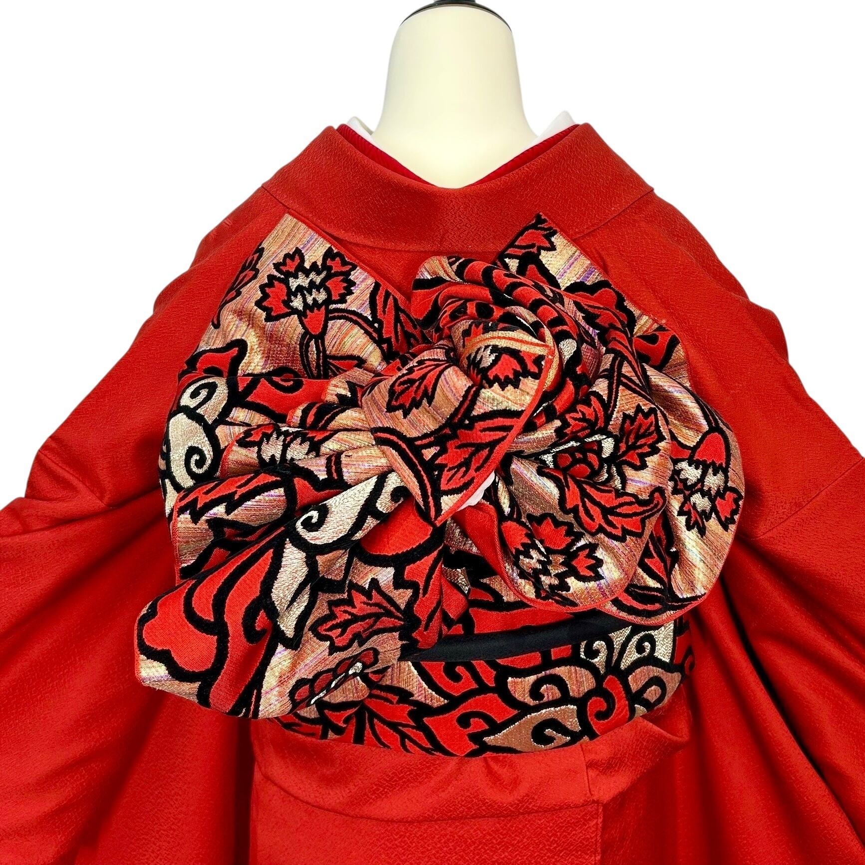 赤と黒の暈しに辻が花の地模様が華やかな振袖
