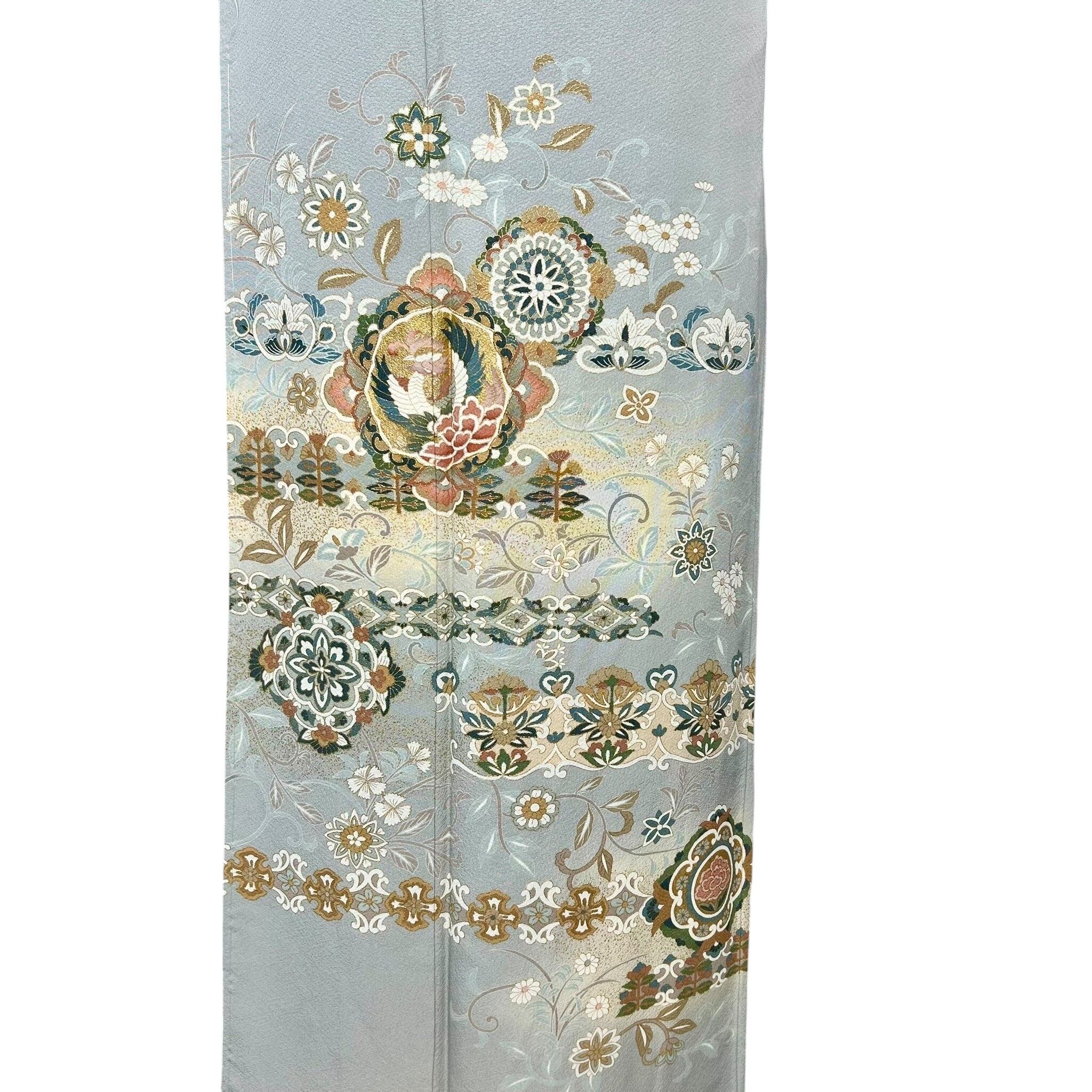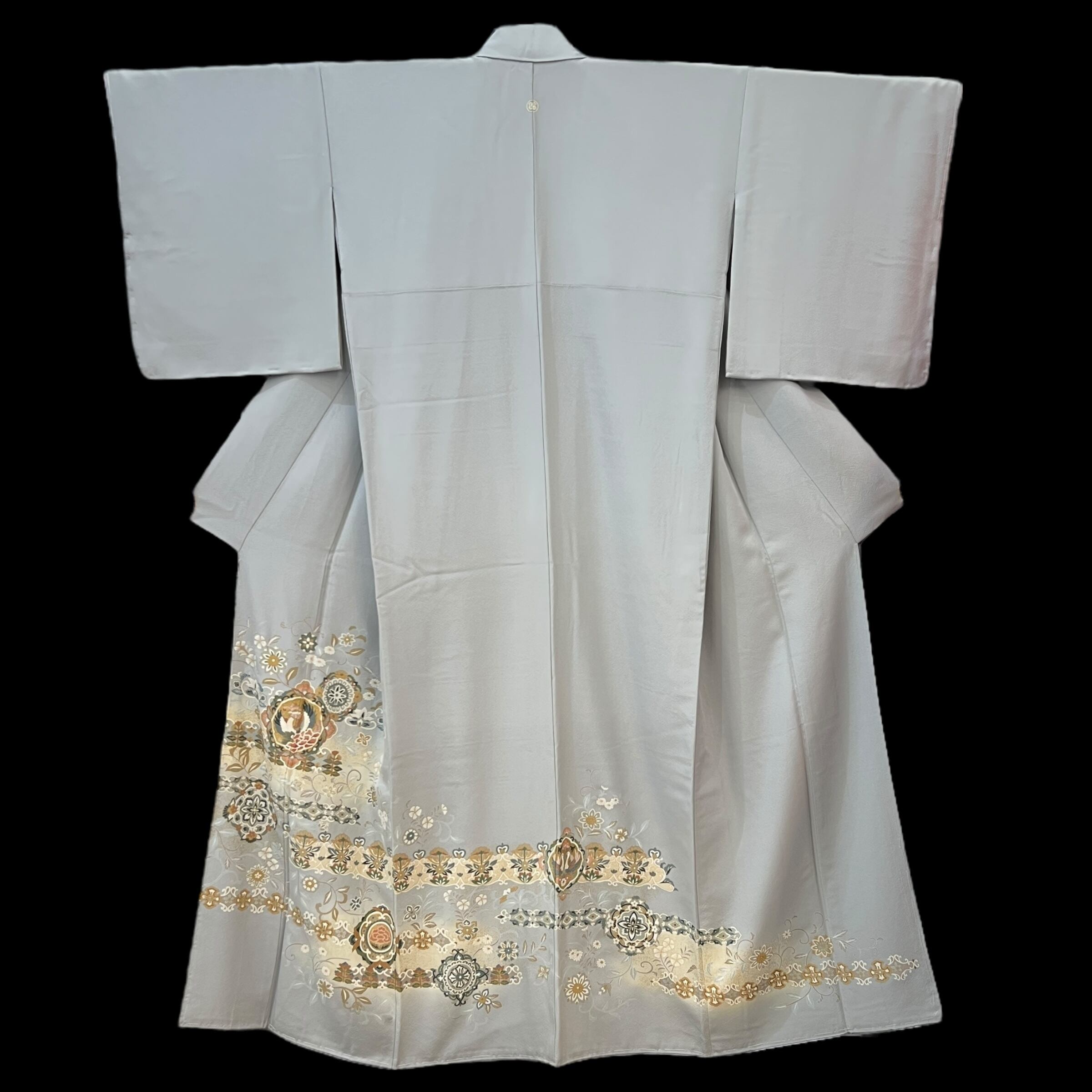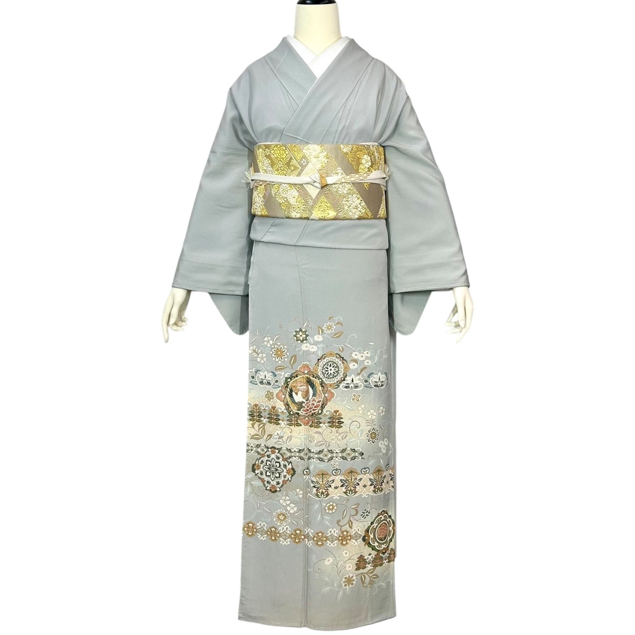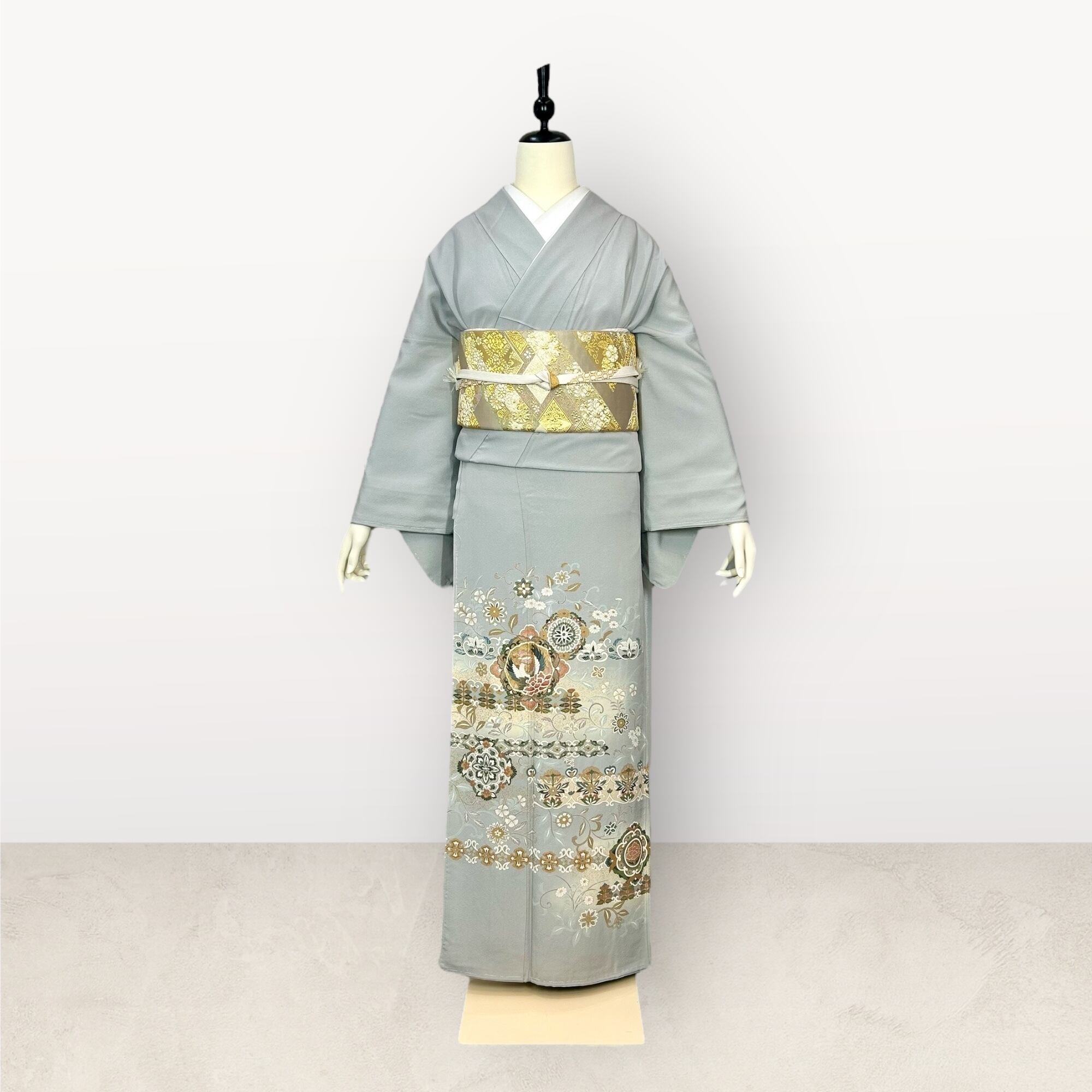 上品なグレーの地色に鳳凰や唐花文様が華やかな色留袖です。