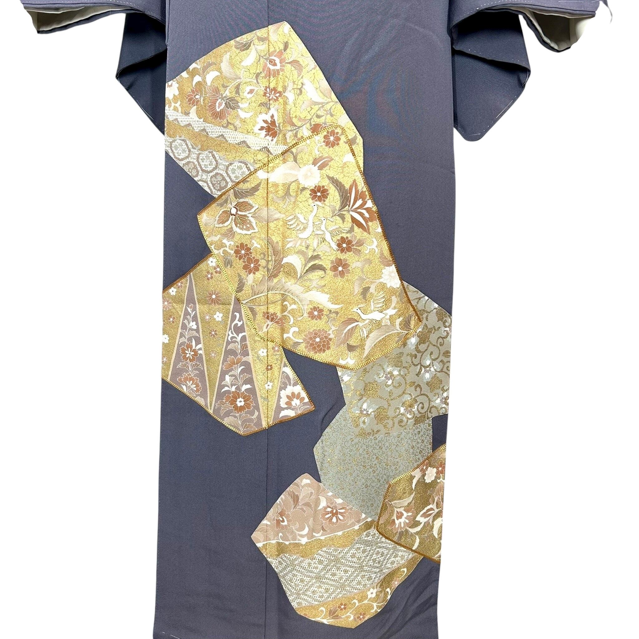 上品な地色に唐花や鳳凰、菱、亀甲などの吉祥文様が華やかな色留袖です。