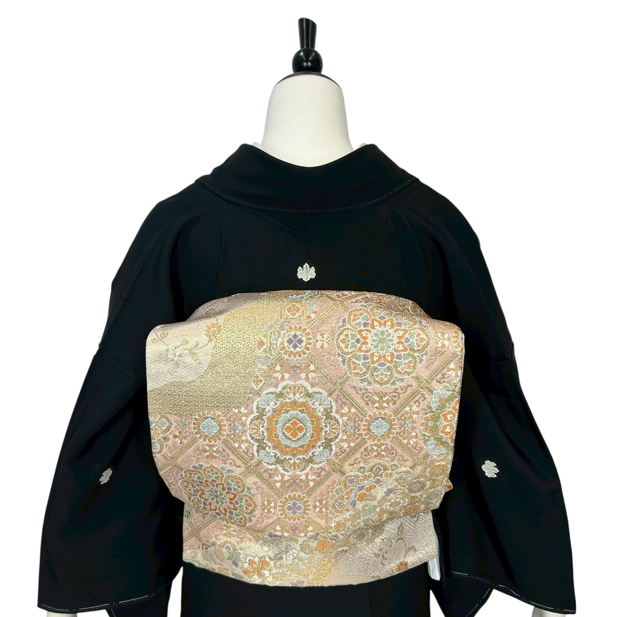 吉祥文様が描かれた御簾文様が華やかな黒留袖 お喜びのお席に花を添える上品な黒留袖です。 着物着用シーン:結婚式・披露宴・パーティーなど 身丈:159cm 裄丈:64cm(肩巾:32cm・袖巾:32cm) 袖丈:49.5cm 後巾:30cm 前巾:24cm 参考サイズ:MS ◆身長159cm位まで ◆ヒップ99cm位まで 仕立て:袷