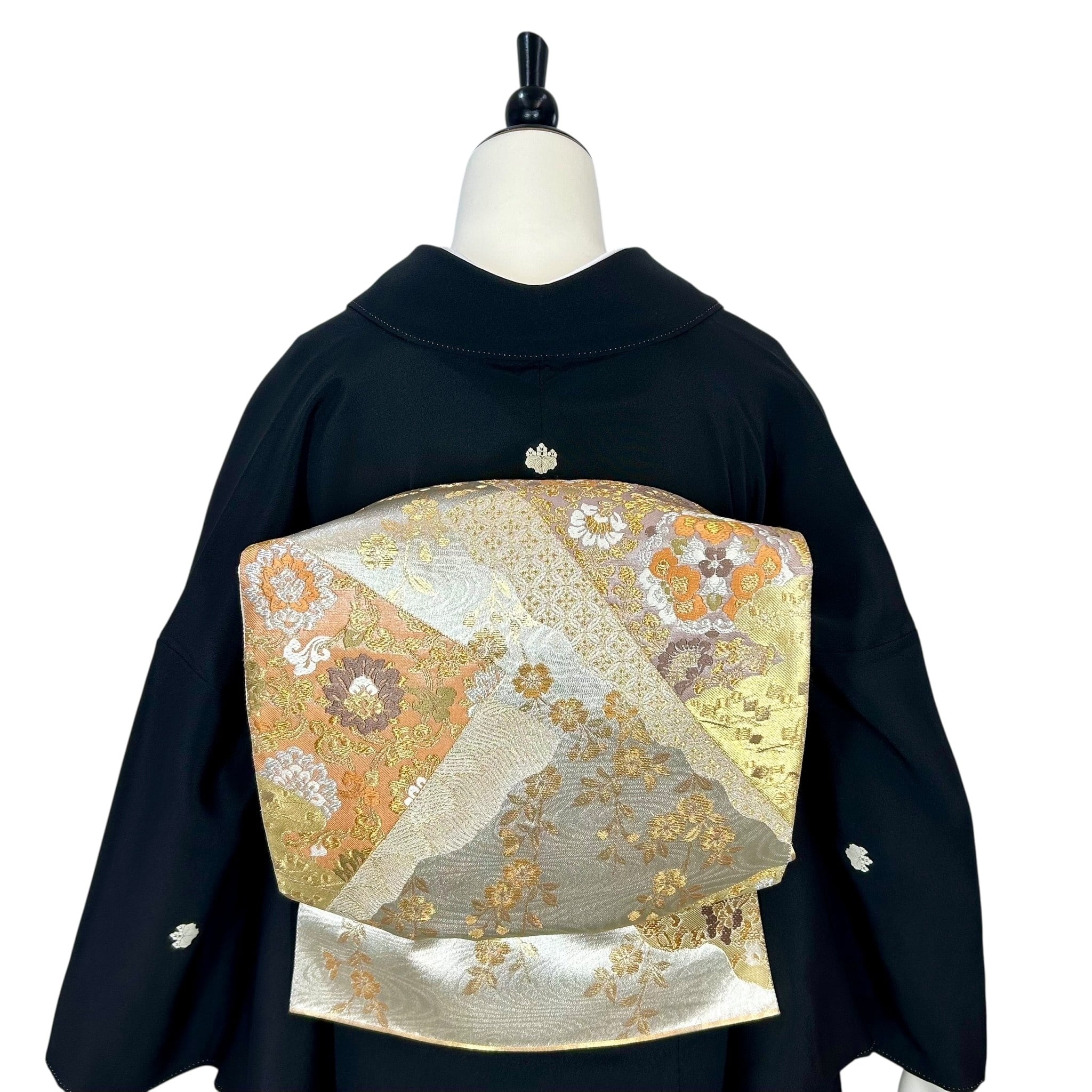 孔雀や四季草花、青海波や亀甲文など 様々な文様が描かれた屏風柄が 華やかなお喜びのお席に花を添える黒留袖です。 着物着用シーン:結婚式・披露宴・パーティーなど 身丈:165cm 裄丈:67cm 袖丈:49cm 後巾:31cm 前巾:25cm 参考サイズ:ML ◆身長155cm~170cm ◆ヒップ102cm位まで 仕立て:袷